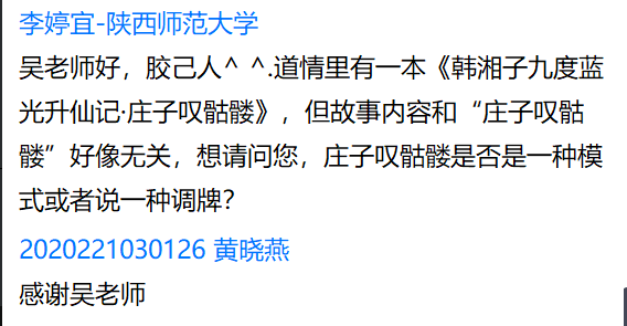 (二)世情硗薄与道情主题的深化。吴真教授指出,在冯梦龙的笔下,阻碍修仙的不止是财富,还有亲眷门徒等世俗社会关系的羁绊。吴真教授通过列举《云门传》具体的文本材料,展现了冯梦龙对于看客嘴脸辛辣冷峻的嘲谑笔法。“世情如此硗薄,钱财恁般珍重”。同时,吴真教授指出,冯梦龙新添《庄子叹骷髅》道情入《李道人独步云门》文本,使之溢出了原本《云门传》的北方语境,加入了晚明江南道情演唱的新内容,加重了对于炎凉世态的讽刺。