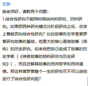 这场讲座,施爱东教授用生动的语言,非常细致地向我们介绍了民间文学研究中的共时研究和历时研究的相关知识。我印象最深刻的一点是老师讲到的综合研究,老师认为综合研究是一种不加分类的研究,是一种应该排斥的研究方法。科学史上不存在单项的综合研究,有效研究必须是封闭研究。老师的这一观点打破了我以往的认知,让我开始思考分类对于一项研究的重要性。短短两小时的讲座,令我获益匪浅。